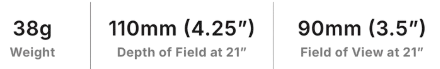 *Weight: 5g (360 Pro headlamp); 17g (AirLUX battery)..