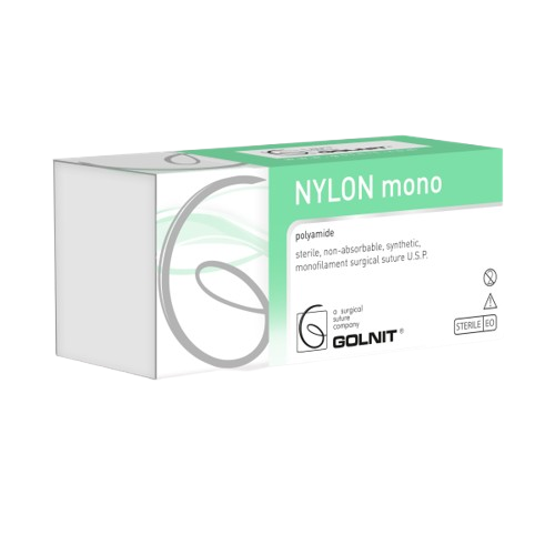 Golnit NYLON MONOFILAMENT Suture is a non-absorbable, nonabsorbable, monofilament, sterile surgical suture composed of the long-chain aliphatic polymers Nylon 6 and Nylon 6,6. Nylon Monofilament sutures are dyed black to enhance visibility in tissue. The suture is also available undyed (clear).