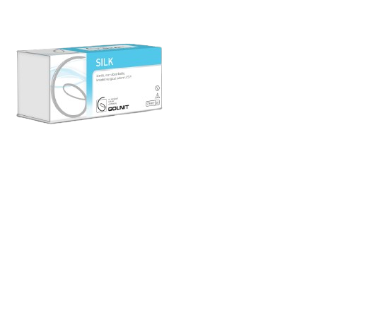 Golnit SILK Suture is a nonabsorbable, braided, sterile, surgical suture composed of an organic protein called fibroin. This protein is derived from the domesticated species Bombyx mori (B. mori) of the family Bombycidae. Silk sutures are processed to remove the natural waxes and gums. Silk suture is dyed black and coated with silicone. Silk suture is also available in its natural color coated with silicone.